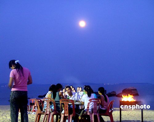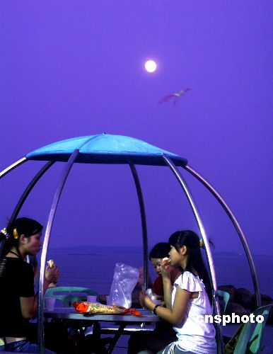 廈門(mén)海邊賞月搏餅看金門(mén)