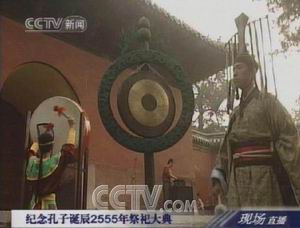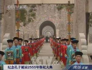 今天是孔子誕辰兩千五百五十五周年,也是中華民族傳統的團圓節日中秋節。在這個喜慶的日子里,曲阜市民迎來了首次官方祭祀孔子的慶典。上午九點整,在莊嚴肅穆中,官方祭祀隊伍經圣時門、弘道門、大中門、同文門、奎文閣、十三碑亭、大成門、杏壇登上大成殿前的祭祀平臺,公祭先師孔子。