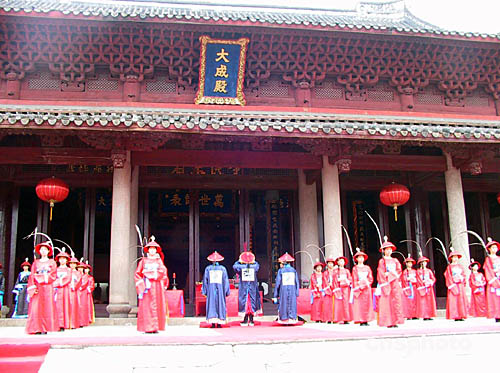 九月二十八日,福州舉行紀念孔子誕辰2555周年祭祀活動?鬃雍笠岽怼⒖讓W專家以及福州市社會各界代表共一千多人參加紀念活動。作者:王東明