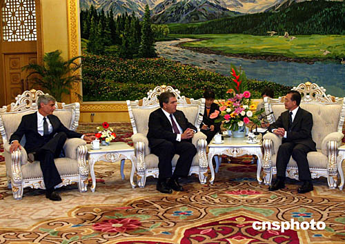 ·溫家寶會(huì)晤美國客人 談完善人民幣匯率形成機(jī)制 (2004-09-28)