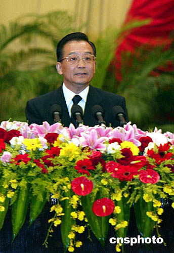 中國國務院九月三十日在北京舉行招待會慶祝中華人民共和國成立五十五周年,國務院總理溫家寶發(fā)表講話。溫家寶指出:祖國完全統(tǒng)一的神圣目標,一定要實現(xiàn),一定能夠?qū)崿F(xiàn)。