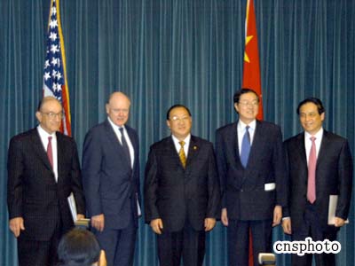 中美經(jīng)濟(jì)聯(lián)委會(huì)第十六屆會(huì)議當(dāng)天在此間召開。中國財(cái)政部長(zhǎng)金人慶與美國財(cái)長(zhǎng)斯諾共同主持了會(huì)議。中國人民銀行行長(zhǎng)周小川、中國銀監(jiān)會(huì)主席劉明康、美聯(lián)儲(chǔ)主席格林斯潘、美國財(cái)政部副部長(zhǎng)泰勒等財(cái)金高官出席了會(huì)議。