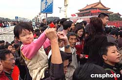 十月二日的國慶節(jié)假日,天安門廣場向北京市民來賓開放,數(shù)十萬游人,紛至沓來,從各個通道擁進(jìn)廣場觀光,形成節(jié)日人山人海的景觀。作者:鄒憲