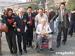 適逢南開學(xué)校百年華誕,由海內(nèi)外南開校友捐建的“百年南開紀(jì)念碑”,十月六日在天津翔宇公園落成。數(shù)學(xué)大師、南開老學(xué)長陳省身坐輪椅親臨紀(jì)念碑落成典禮。作者:孫志民