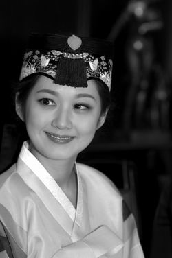 身著韓國傳統服裝的張娜拉 徐萬濤/攝