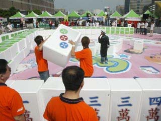 圖文:臺北舉行超大型麻將賽 比腦力也比體力