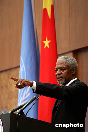 正在北京訪問的聯合國秘書長安南,十月十一日在清華大學發表演講。中新社記者:毛建軍