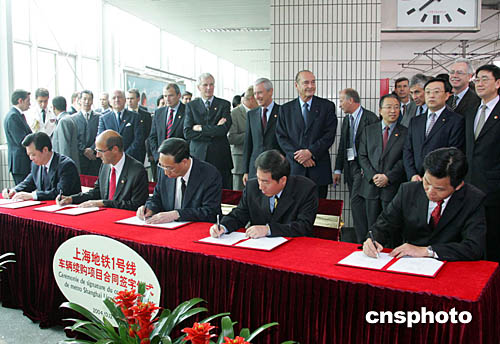 ·圖:希拉克見證上海購置中法合作生產(chǎn)地鐵車輛簽約 (2004-10-12)