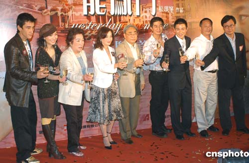 港產(chǎn)電影《龍鳳斗》10日13日晚在香港時代廣場舉行龍鳳激斗首映禮,《龍鳳斗》臺前幕后與贊助商于首映禮上舉杯預(yù)祝票房旺收。作者:鄧慶樂