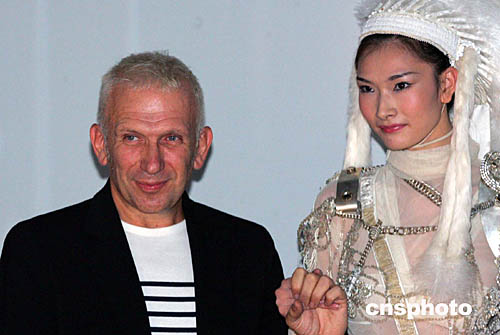 圖為讓·保羅·戈帝埃(圖左)和中國模特在一起。作者:湯彥俊