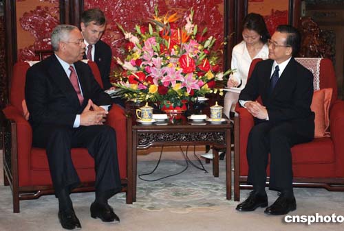 溫家寶會見鮑威爾 稱領導人會晤有助于雙邊關系