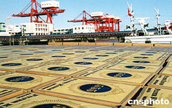 據上海海關二十五日透露,該海關近日破獲了一起重大香煙走私案,共抓獲走私涉案人員三十二名,查扣走私運輸船舶四艘、汽車五輛,緝獲走私香煙一千六百余箱,案值一千余萬元人民幣。圖為收繳的部分香煙。作者:關宣