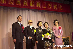 圖:清水正夫夫婦榮獲“文化交流貢獻(xiàn)獎(jiǎng)”