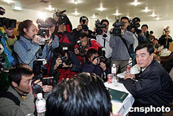 出席中超投資人聯席會議的中國足協副主席閻世鐸成為與會媒體矚目的焦點。