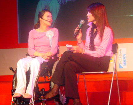 中新網10月27日電 據華西都市報報道,25日晚,桑蘭出現在復旦大學參加“2004桑蘭校園行”活動,與高校學子一起對話奧運,為2008年的北京喝彩。這是繼北京、廣州之后,桑蘭校園行的第三站。桑蘭是個絕對堅強的人,坐在輪椅上的她沒在外人面前露出一點沮喪的表情。