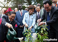 吳邦國委員長在聯合國駐內羅畢總部花園種下合作之樹