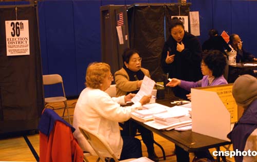 紐約州的選舉站都有懂華語(yǔ)、韓語(yǔ)、西班牙語(yǔ)的工作人員為少數(shù)族裔選民提供幫助。作者:趙海燕