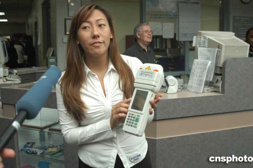 在投票現場,工作人員手拿電子記錄儀,可以對登記選民身份進行核對。作者:余東暉