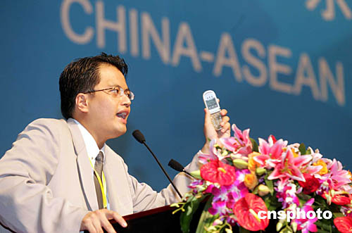 十一月四日,東盟—中國商業集團首席執行官李統毅博士,在首屆中國—東盟商務與投資峰會上做主題演講時稱,中國的發展對東盟不僅不是威脅,而且還會提供眾多的商機。以手機為例,二零零一年,中國已超過美國成為世界第一大首機消費國,到二零零五年,中國手機用戶將超過兩億九千萬部,這將為東盟各國提供許多商機。中新社記者:武仲林