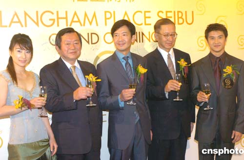 香港西武旺角朗豪坊店5日開幕﹐奧運會金牌得主郭晶晶﹑田亮作為嘉賓到場﹐與其它嘉賓舉杯祝賀。作者:趙振清