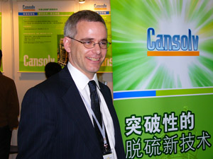 在展會上,加拿大康世富科技環保有限公司是國際上少數擁有成熟脫硫脫硝技術企業之一。該公司副總裁柯林·萊恩先生說,“康世富來了世界領先的可再生胺液脫硫技術,希望康世富技術能為中國的酸雨防治和綠色GDP助一臂之力”。他表示,與目前通用的石灰石-石膏法相比,康世富技術具有脫硫效率高(99%以上)、投資合理、綜合運營成本低、占地少、節水節能、脫硫胺液可循環使用7至10年、無二次污染等優點。他相信,這個技術進入中國后,很快能找到合作伙伴。