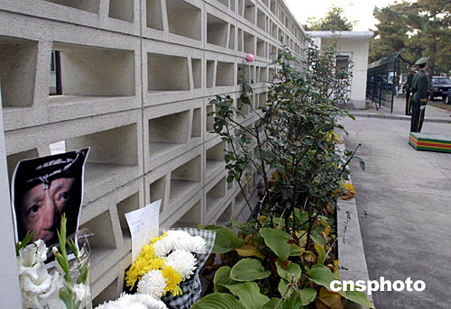 十一月十一日下午,由一些北京市民和學生自發敬獻的一簇簇鮮花擺放在巴勒斯坦國駐華使館門前,表達他們對巴勒斯坦國總統、巴民族權力機構主席阿拉法特的哀悼。阿拉法特當天在法國巴黎病逝。中新社記者:張煒