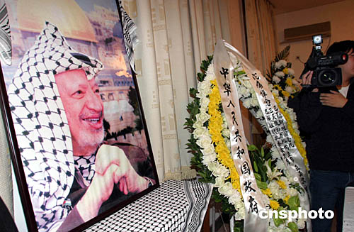 圖:中國政府向已故阿拉法特主席敬獻花籃