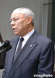 美國國務卿鮑威爾當地時間11月15日宣布辭職,在美國引起巨大反響,人們為布什在第二任內失去溫和派的代表聲音感到遺憾。這是鮑威爾最近在美國國務院門前歡迎中國外長李肇星致辭時的照片。作者:余東暉