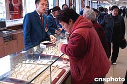 在國際金價(jià)上揚(yáng)下,京城黃金第一家----北京菜市口百貨股份有限公司從十一月十六日起,將足金飾品售價(jià)由每克126元人民幣上調(diào)至130元。當(dāng)日在北京菜百新世紀(jì)商場,一些顧客面對甫漲價(jià)的金飾品頗有“相見恨晚”之意。作者:鄒憲