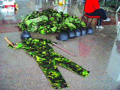 昨天上午,珠寶商戶們坐在怡和建材城三號(hào)樓一層的地鋪上休息。在4樓的女廁所里,一珠寶商戶發(fā)現(xiàn)了30多套迷彩服和8個(gè)鋼盔。傷勢(shì)較重的龔女士左腰部留有明顯淤青,上面涂滿了厚厚的藥膏。池先生的右太陽穴紅腫發(fā)青。還有一名商戶頭部受傷在中日友好醫(yī)院留院觀察。和平街派出所的民警正在對(duì)珠寶商戶逐一錄口供調(diào)查。(陶嬋、傅沙沙)