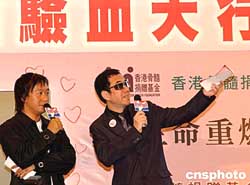 香港明星黃秋生(右)20日出席“骨髓捐贈驗血大行動”,以名人效應影響更多人。作者:譚達明