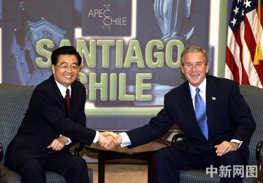 會見結束后,兩國元首共同會見了記者。胡主席表示,剛才同布什總統(tǒng)進行了內容豐富的會談。雙方還就臺灣問題交換了看法。我對布什總統(tǒng)表示繼續(xù)堅持一個中國政策、恪守三個聯(lián)合公報、反對“臺獨”的立場表示贊賞。