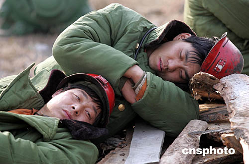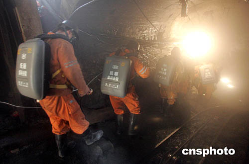 下午五點(diǎn)左右,在副礦口外,一群人正緊急待命,準(zhǔn)備下井搜救被困人員。他們有的是這個(gè)礦區(qū)的工人,有的是裝備齊全的救護(hù)小隊(duì)。那些工人手持幫助呼吸的自救器,下去是要搜救位于礦區(qū)淺層的被困人員,這些地段相對(duì)安全,而救護(hù)小隊(duì)的隊(duì)員目標(biāo)是礦區(qū)深層中的被困人員。記者目送著他們慢慢消失在了迷茫的空氣中,問旁邊人他們什么時(shí)候可以上來,沒有得到準(zhǔn)確答案。