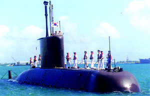 韓國的主要作戰潛艇是1992~1998年從德國購買的9艘209型常規動力潛艇。前兩艘和印度的潛艇一樣,是在德國HDW公司的基爾造船廠建造的。209型常規動力潛艇是德國霍瓦茲德意志船塢集團的杰作。它以出色的性能創造了常規潛艇出口數量最多、使用國家最多的兩項世界紀錄,成為世界市場上的“名牌產品”。209型潛艇的集中控制能力和自動化水準比其他潛艇高許多。它可以下潛到300米,水下最大航速23節,并且裝備了8具533毫米魚雷發射管,可在最大深度發射魚雷。該艇采用數字化火控系統,可實時從探測轉入攻擊,在一擊不中的情況下可以實施再攻擊。除魚雷外,209型潛艇可以使用美制“魚叉”型潛射導彈。