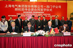 十一月二十三日,上海西門子燃氣輪機部件有限公司成立簽約儀式在滬舉行。該公司是由西門子公司和上海電氣集團股份有限公司共同投資五千五百萬歐元合作成立的。圖為簽約儀式現(xiàn)場。作者:湯彥俊