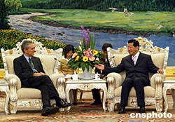 全國政協(xié)主席賈慶林,十一月二十四日在北京人民大會堂會見以黨主席弗朗切斯科·魯泰利為團長的意大利雛菊黨代表團。中新社記者:廖文靜