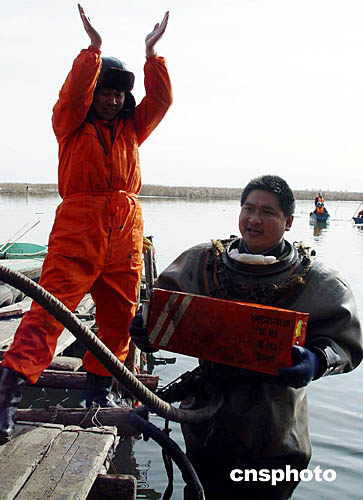 11月24日中午12點48分,包頭空難失事飛機的第二個黑匣子被打撈出水面。作者:郭鐵銳