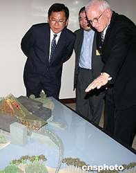 臺北“故宮博物院”將投入數十億元新臺幣在嘉義縣建分院。在公開競逐中,來自美國的著名建筑師Antoine Predock最終勝出。圖為十一月二十四日,Antoine Predock(右)介紹他所設計的“故宮分院”。中新社記者:董會峰