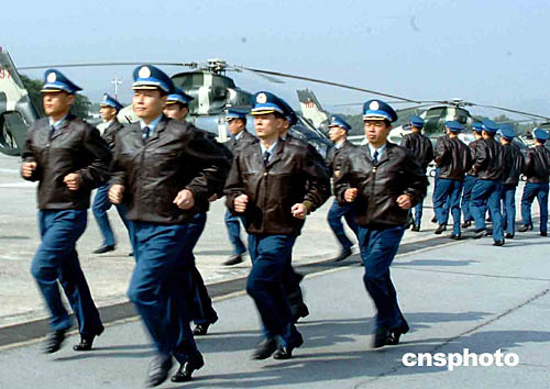 駐港部隊航空兵團二大隊的六架空軍直九直升機,于今天上午飛抵石崗機場。交接后,出港的一大隊所屬直升機飛返廣州基地。