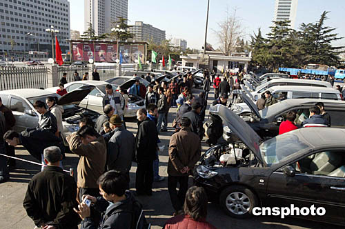 十一月二十七日,許多市民來到北京軍事博物館觀看并了解有關走私車拍賣的情況。