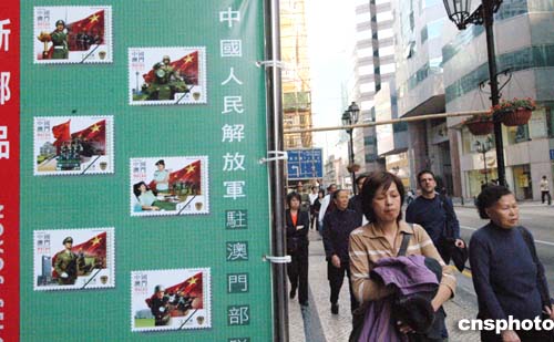 澳門郵政局將于十二月一日發(fā)行“中國人民解放軍駐澳部隊”郵品,該新郵品反映了駐澳部隊依法駐軍,從嚴治軍,苦練精兵,熱心公益,樹立了威武之師、文明之師的良好形象。作者:梁永強
