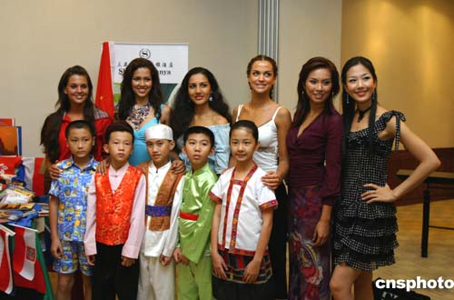 在第54屆世界小姐總決賽前夕,抵達三亞的109位佳麗日前為三亞第一小學的孩子們捐書。圖中從左到右分別為中國小姐、中國臺北小姐、馬亞西亞小姐和新加坡小姐。