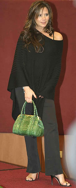 2日,維多利亞準時出席新聞發(fā)布會,采訪過她“處女秀”的記者驚奇地發(fā)現(xiàn),辣妹居然跟自己“撞衫”,和10月22日來滬參加SWATCH代言時穿得一模一樣:黑色連身裙,外罩一件碩大黑色披肩。“辣妹”還脫不了女人的那點嗜好,對冒牌貨“情有獨鐘”。“我非常喜歡到上海的小店去淘東西,這次我會繼續(xù)添加小商品。”上次維多利亞“收獲”的其實只是一個冒牌LV皮袋。