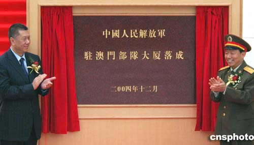 三日,解放軍駐澳部隊(duì)為新建的“駐澳門部隊(duì)大廈”舉行落成典禮,澳門特首何厚鏵、廣州軍區(qū)副政委張國(guó)初中將等出席了典禮。
