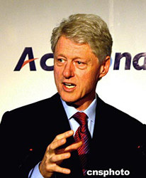 大病之后的美國前總統克林頓前往助陣,并和ACCOONA公司董事會主席埃克哈德·法伊弗(右)一起操作搜索引擎。