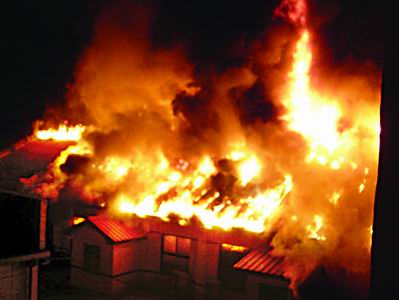 “火苗從屋頂往上噴,并向西邊液化氣站蔓延。”住在3樓的學生說,他們撤到學校的操場上,聽到第一次爆炸聲。隔了10分鐘后響起了第二次爆炸聲。