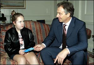 中新網(wǎng)12月8日電 英國《太陽報》報道,7日,英國首相布萊爾會見了12歲小姑娘比安卡·鮑威爾,對她與壞人進(jìn)行頑強(qiáng)抗?fàn)幍木窠o予了充分肯定。