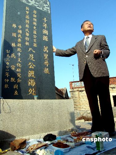 韓國憲政會政策委員會議長、林氏中央會會長林芳鉉先生千里迢迢帶團(tuán)參加慶典,當(dāng)天下午,韓國代表團(tuán)一行還特地趕往惠安東嶺彭城拜謁“林八及渡海處”遺址,他們還帶來了韓文撰寫的詳細(xì)記載了唐朝林八及渡海赴韓及后裔來泉尋根歷史的碑文,準(zhǔn)備銘刻在前年用中文所立“千年溯源萬里尋根”紀(jì)念碑的背面。林芳鉉介紹,韓國也有個(gè)地方叫彭城,唐朝時(shí)始祖林八及公從惠安彭城去往韓國,因?yàn)閼涯罟释粒瑢⒛抢锩麨榕沓恰mn國有姓氏300多個(gè),林姓位列前十,林氏后裔現(xiàn)有100多萬人。