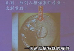 他并稱,從現場彈頭彈殼分析,發現多處不規則痕跡,其中鉛彈頭有刀刻痕跡,特征為車庫制造;底火帽則為紅色,屬塑料材質,兩個子彈的內部屬多層次結構,手法非常特殊,且砧片前端為尖牙,項目小組以此作為偵辦重點全面追查,迄今已對槍彈制造工廠清查上千次。