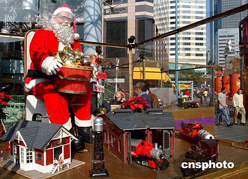 十二月十三日的美國洛杉磯街頭圣誕節氣氛漸濃,圣誕老人和懷舊微型火車裝飾再現過去的好時光。中新社記者:賈國榮
